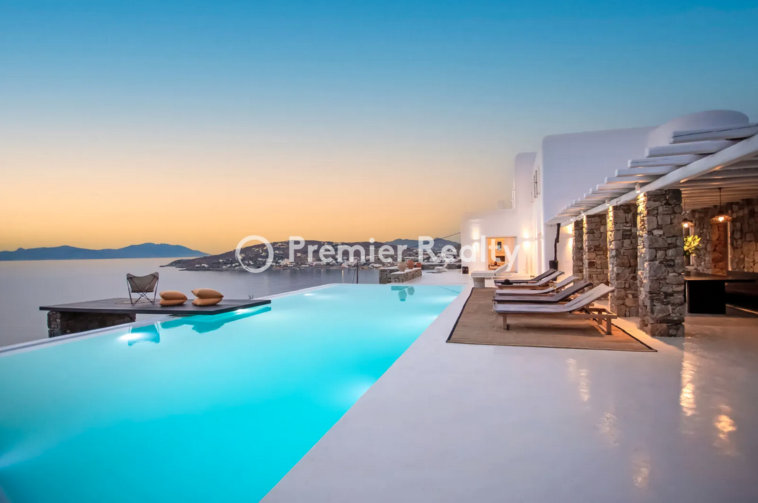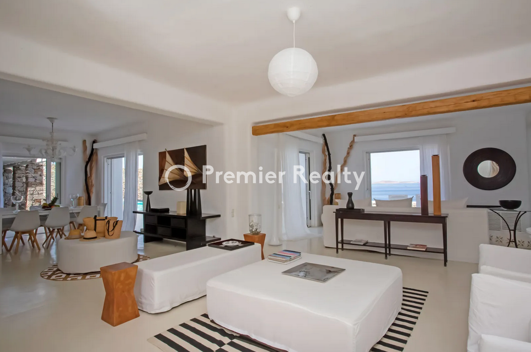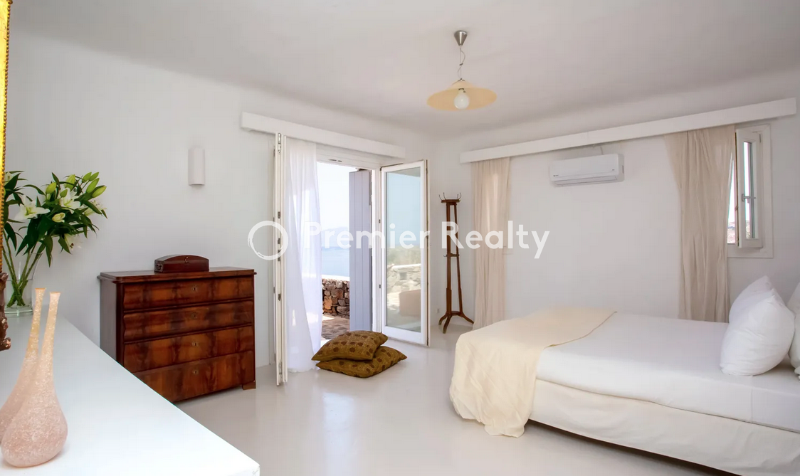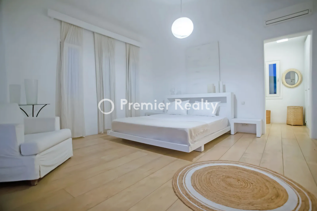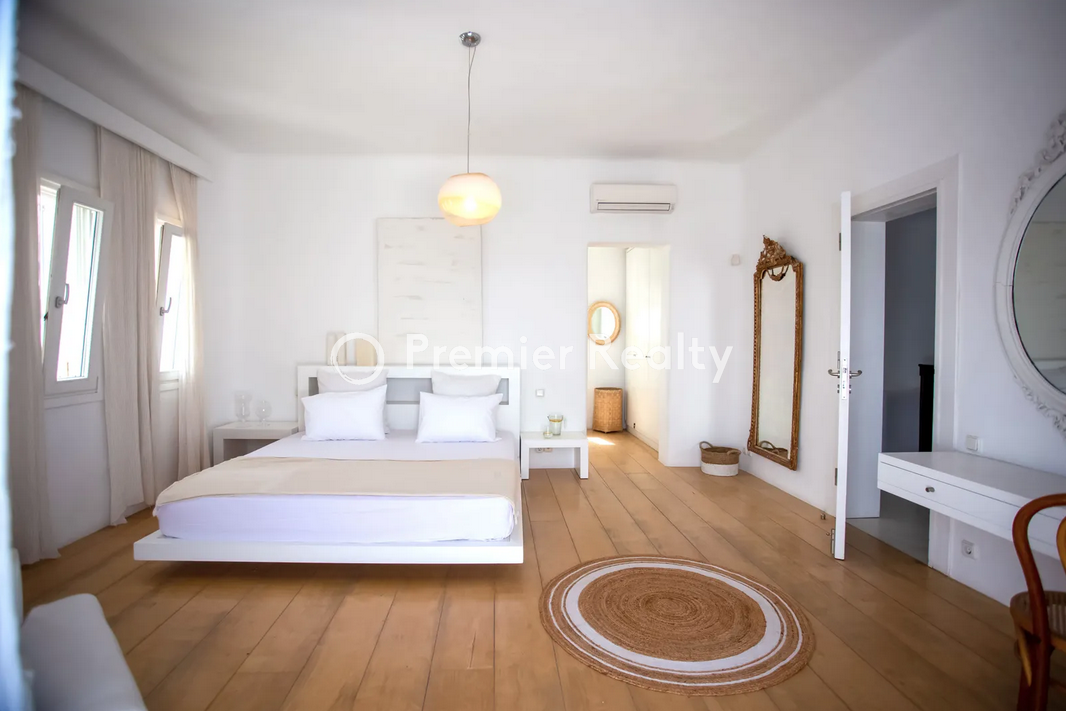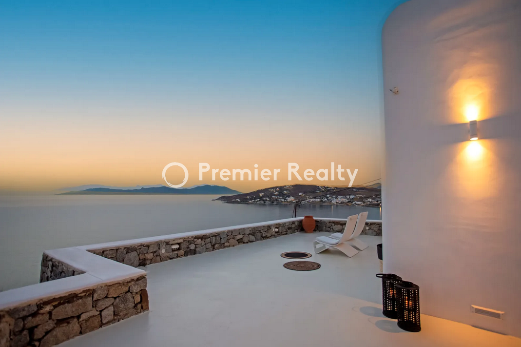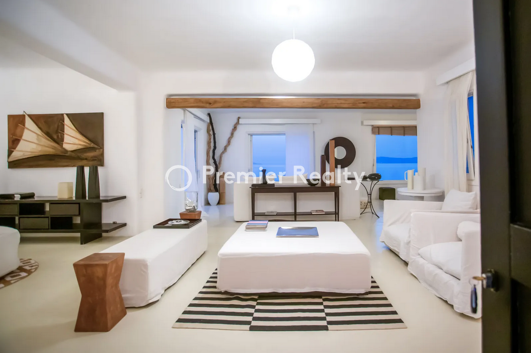 Set on one of the most coveted stretches of coastline in Mykonos, this villa is a sanctuary where scale, privacy, and perspective converge. Rising on an expansive 4,000 sq.m. private plot—a rarity on the island—it commands uninterrupted views of the Aegean and the sacred island of Delos. Here, every sunset is a private performance, every horizon a promise of timeless beauty. The Residence Extending across 550 sq.m. on three levels, the main villa offers refined interiors designed for elegant island living. An additional 70 sq.m. independent guest studio complements the property, bringing the total estate size to 620 sq.m. • Ground Level – One bedroom, a fully equipped kitchen, and a serene garden blending indoor and outdoor living. • First Level – Two beautifully appointed en-suite bedrooms, each oriented to capture natural light and sea views. • Semi-Basement – Two further en-suite bedrooms, a second kitchen, a storage room, and staff accommodation, ensuring comfort and discretion. • Independent Guest Studio – A self-contained retreat with its own kitchen and bathroom, offering ultimate privacy for visiting guests. Outdoor Living The villa’s exterior is designed as an extension of the view. A 7 x 14 m infinity pool appears to merge with the horizon, while expansive terraces invite moments of relaxation, celebration, or quiet reflection. A shaded pergola and BBQ area provide the perfect setting for al fresco dining, as the sky over Delos turns gold at dusk. Property Highlights • Total living space: 550 sq.m. • Expansive plot: 4,000 sq.m. (rare for Mykonos) • 6 bedrooms (including service room) • Independent guest studio (70 sq.m.) • Infinity pool with panoramic views of Delos & the Aegean • Contemporary Mykonian design, built in 2006 • Absolute privacy, soundproof windows, seamless indoor–outdoor flow Location • Mykonos Town (Chora): 3.5 km • Airport: 4 km • Port: 5.5 km • Nearest Beach – Agios Ioannis: 1.2 km • Psarrou Beach: 4 km A Timeless Investment Few estates in Mykonos combine such generous grounds with views of such enduring significance. This villa is not simply a residence—it is a legacy property, crafted for discerning individuals who seek beauty, serenity, and long-term value.