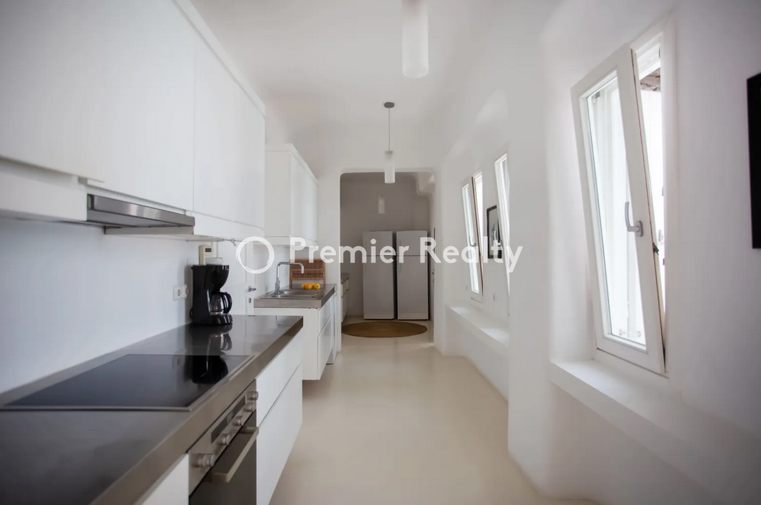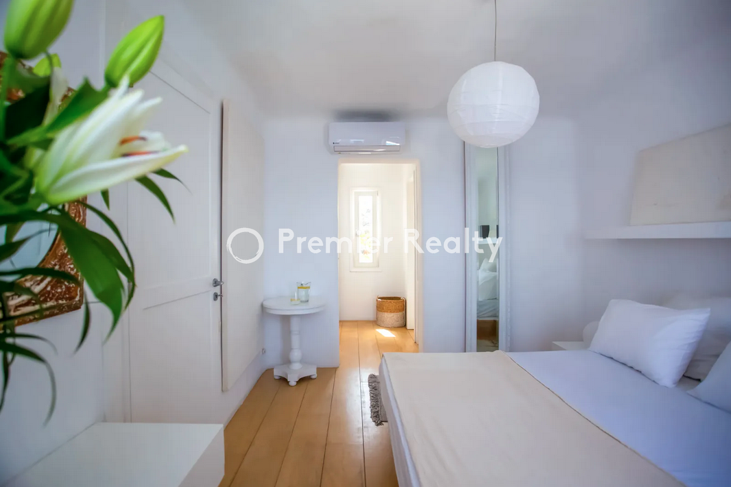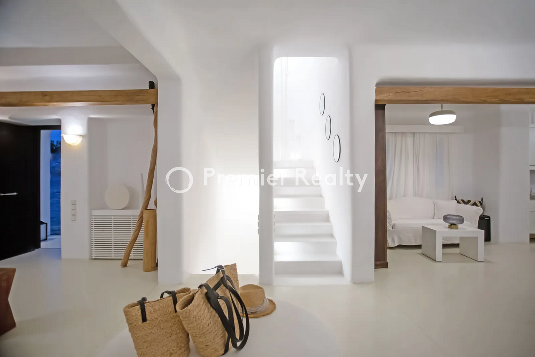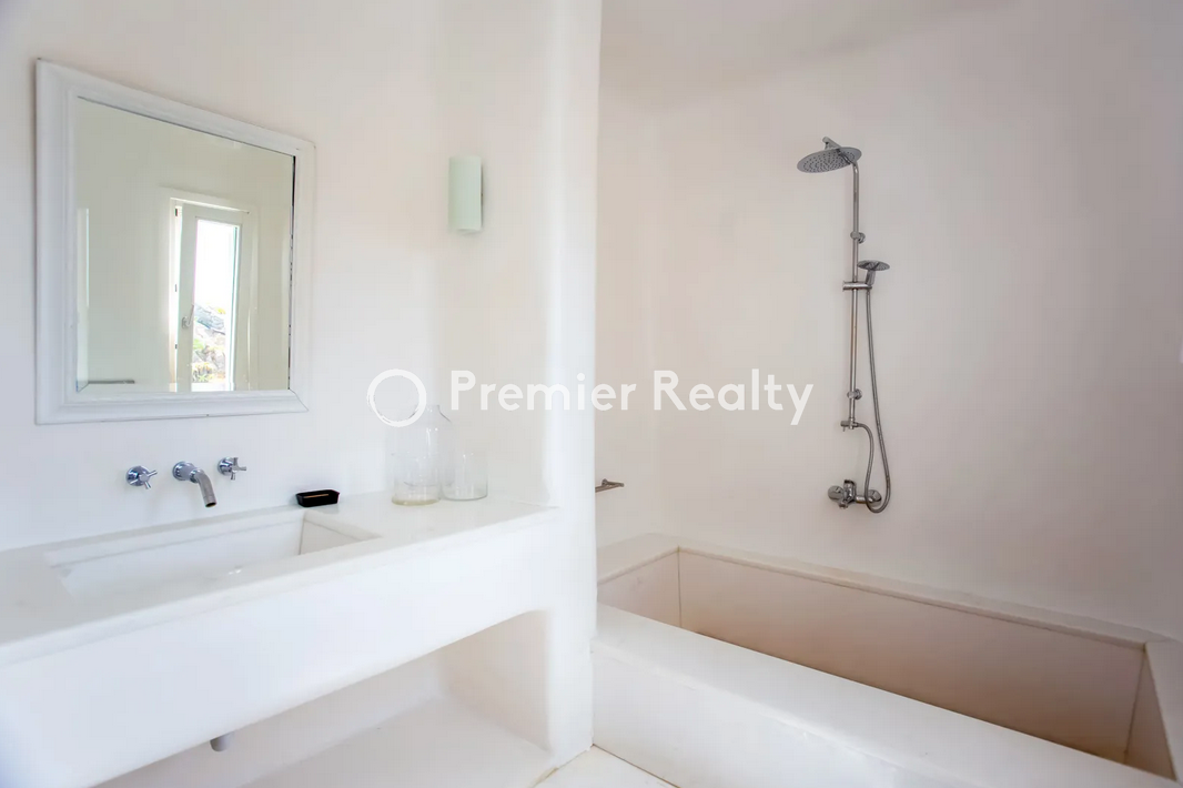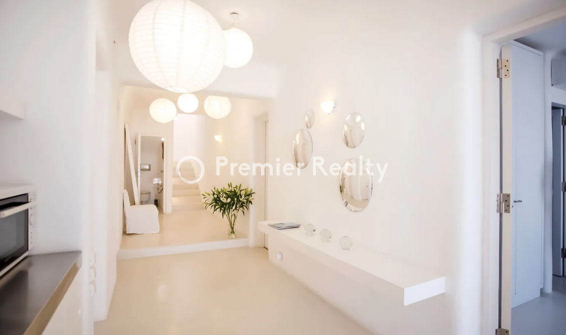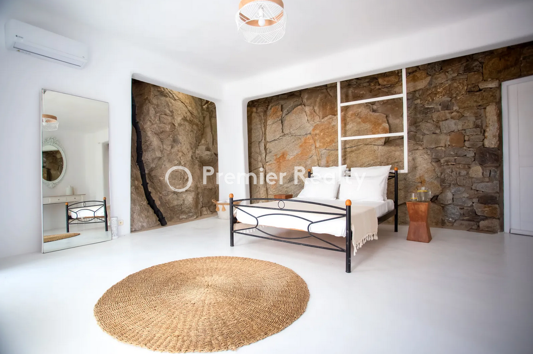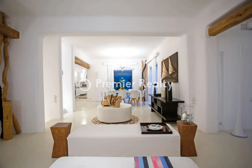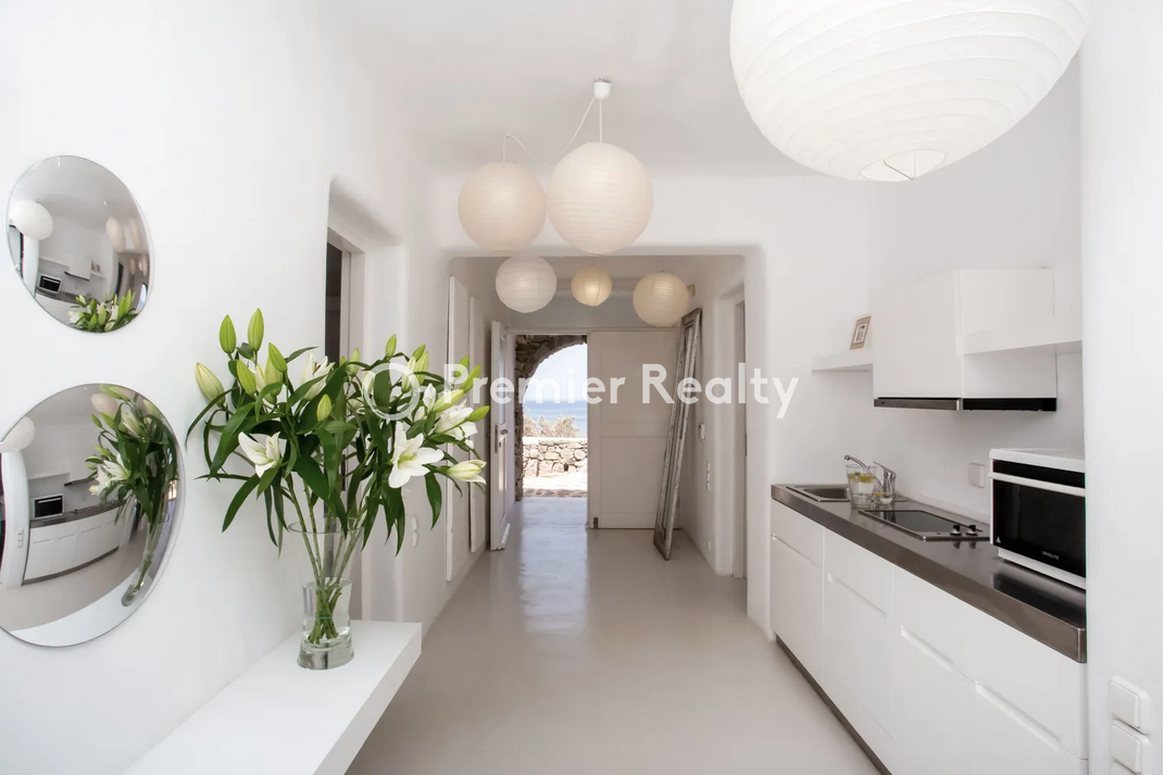 Set on one of the most coveted stretches of coastline in Mykonos, this villa is a sanctuary where scale, privacy, and perspective converge. Rising on an expansive 4,000 sq.m. private plot—a rarity on the island—it commands uninterrupted views of the Aegean and the sacred island of Delos. Here, every sunset is a private performance, every horizon a promise of timeless beauty. The Residence Extending across 550 sq.m. on three levels, the main villa offers refined interiors designed for elegant island living. An additional 70 sq.m. independent guest studio complements the property, bringing the total estate size to 620 sq.m. • Ground Level – One bedroom, a fully equipped kitchen, and a serene garden blending indoor and outdoor living. • First Level – Two beautifully appointed en-suite bedrooms, each oriented to capture natural light and sea views. • Semi-Basement – Two further en-suite bedrooms, a second kitchen, a storage room, and staff accommodation, ensuring comfort and discretion. • Independent Guest Studio – A self-contained retreat with its own kitchen and bathroom, offering ultimate privacy for visiting guests. Outdoor Living The villa’s exterior is designed as an extension of the view. A 7 x 14 m infinity pool appears to merge with the horizon, while expansive terraces invite moments of relaxation, celebration, or quiet reflection. A shaded pergola and BBQ area provide the perfect setting for al fresco dining, as the sky over Delos turns gold at dusk. Property Highlights • Total living space: 550 sq.m. • Expansive plot: 4,000 sq.m. (rare for Mykonos) • 6 bedrooms (including service room) • Independent guest studio (70 sq.m.) • Infinity pool with panoramic views of Delos & the Aegean • Contemporary Mykonian design, built in 2006 • Absolute privacy, soundproof windows, seamless indoor–outdoor flow Location • Mykonos Town (Chora): 3.5 km • Airport: 4 km • Port: 5.5 km • Nearest Beach – Agios Ioannis: 1.2 km • Psarrou Beach: 4 km A Timeless Investment Few estates in Mykonos combine such generous grounds with views of such enduring significance. This villa is not simply a residence—it is a legacy property, crafted for discerning individuals who seek beauty, serenity, and long-term value.