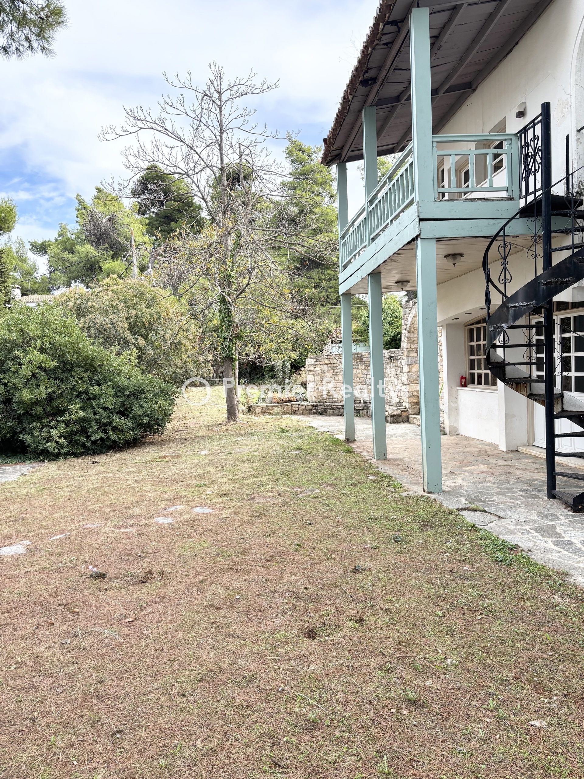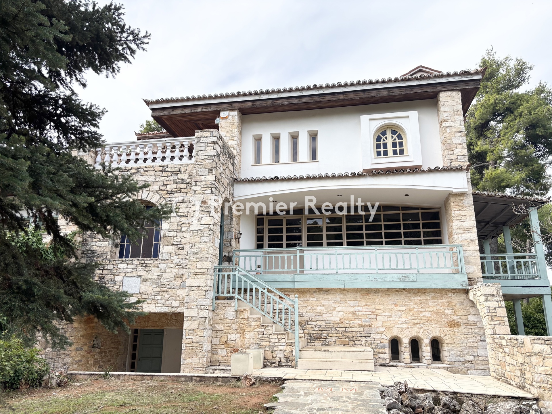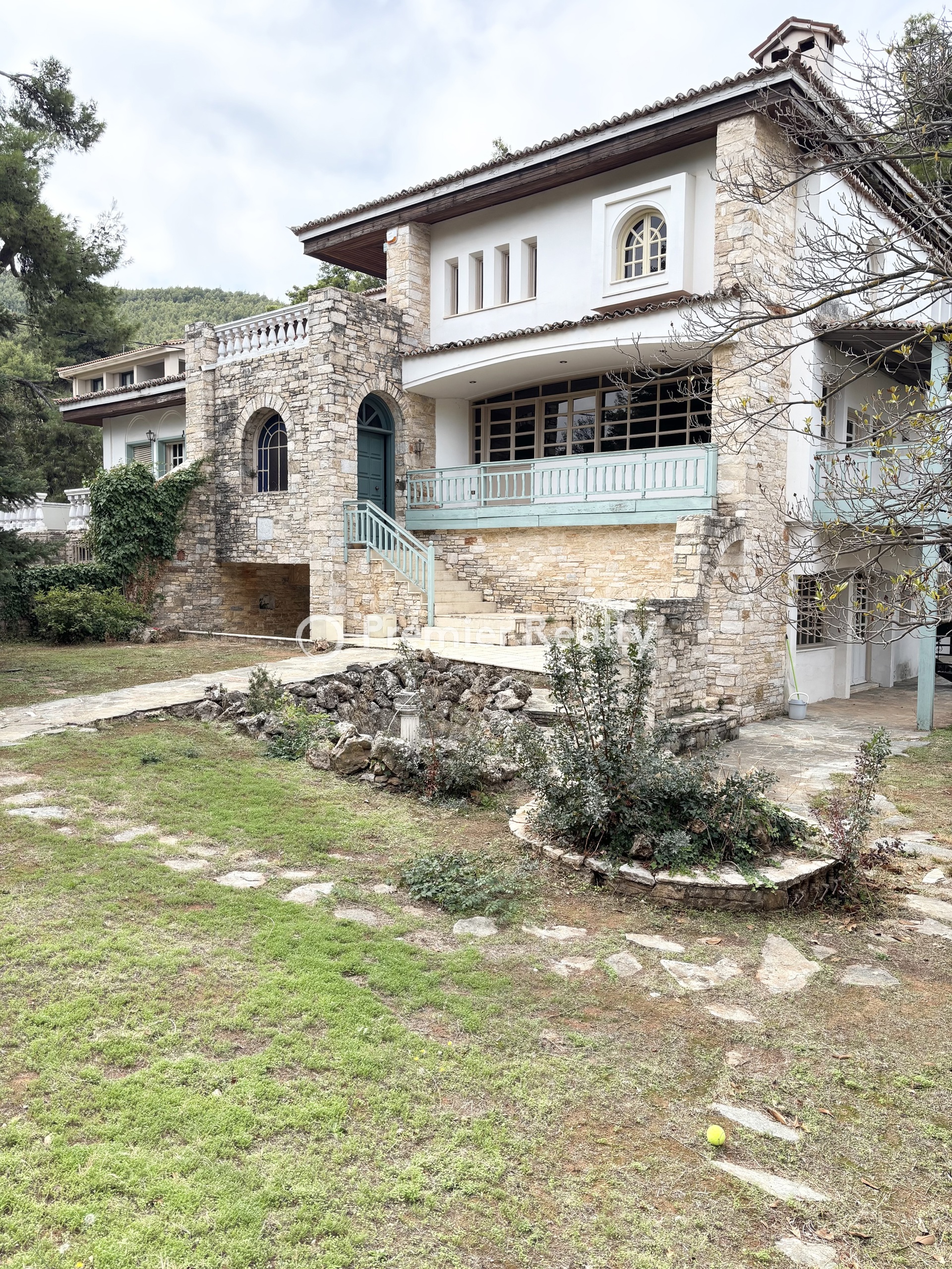 Nestled in the verdant enclave of Rhea, Drosia, this exceptional 530 sq.m. stone residence, designated by painter Yannis Tsarouchis as a traditional mansion, stands out for its imposing architecture, neoclassical aesthetic, and superior craftsmanship. The stone façade, boiserie ceilings, arched openings, and 36 windows imbue the home with authenticity and timeless elegance, set on a corner plot of 997 sq.m., just 300 meters from Dionysou Avenue. The Residence Spanning three levels and an attic, each with an independent entrance, the property offers exceptional flexibility — ideal for families with older children or for those seeking a dedicated workspace. It is distinguished by its solid structural integrity (triple concrete reinforcement/steel) and its commanding architectural lines. • Ground Floor (216 sq.m.) – Living area with stone fireplace, playroom, gym space, kitchenette, bathroom, staff room with separate entrance, laundry area, and closed garage for two cars (plus three outdoor spaces). • First Floor (200 sq.m.) – Main entrance, reception areas on three split levels, marble fireplace, kitchen with dining area, bathroom, and guest bedroom with cedarwood wardrobes and balcony. • Second Floor (103 sq.m. + attic 11 sq.m.) – Two master bedrooms with ensuite bathrooms, a sitting area with built-in library and a Tsarouchis-designed fireplace, and an attic ideal as an office or reading nook. Outdoor Living The 781 sq.m. landscaped garden extends the living space outdoors, featuring stone-built seating areas, an integrated BBQ, and ample room for a swimming pool. With its southern orientation, the home enjoys abundant natural light throughout the day and a serene sense of harmony with its surroundings. Property Highlights • Total area: 530 sq.m. • Plot size: 997 sq.m. • Garden: 781 sq.m. • Bedrooms: 4 (2 master, 1 guest, 1 staff) • Bathrooms: 4 • Parking: 5 spaces (2 enclosed + 3 open) • Heating: Electric storage heaters • Additional building capacity: 180 sq.m. • Year of construction: 1981 • Frames: YROKO aluminum joinery • Orientation: South-facing • Legal status: Fully compliant with digital ID Location Located in Rhea, Drosia, between Ekali and Dionysos, the residence is surrounded by elegant homes and offers easy access to northern Athens. Just 300 meters from Dionysou Avenue, it provides immediate proximity to schools, shops, and everyday amenities. A rare property of architectural distinction Few residences combine such historical heritage, structural strength, and expansion potential. This unique home in Rhea, Drosia, stands as a rare architectural gem, symbolizing refinement, authenticity, and lasting value for those who seek space, character, and timeless elegance.