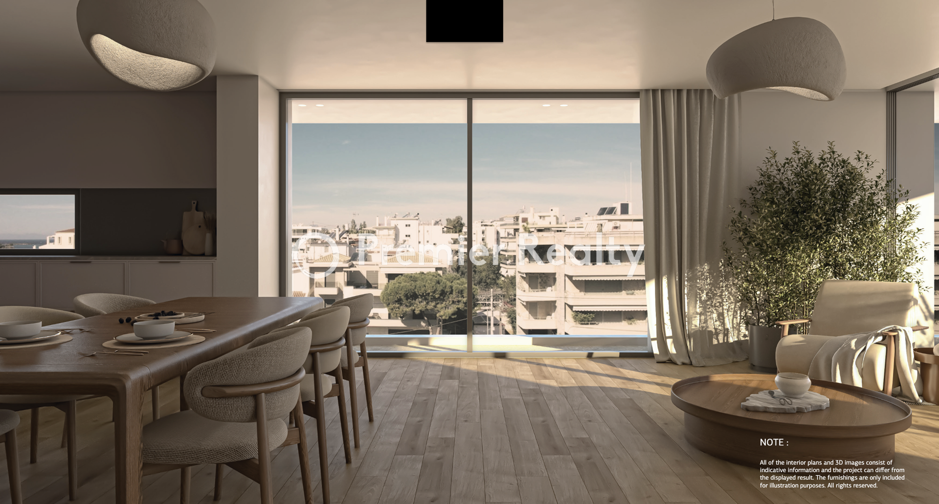 Set in a privileged location in Kato Voula, only 300 meters from the coastline, this contemporary penthouse unfolds across the upper levels of a modern residential building and enjoys open panoramic views over the area, extending across the cityscape and toward the surrounding mountains. Defined by clean architectural lines, high energy standards, and generous outdoor spaces, it delivers a refined living experience that balances privacy, light, and proximity to the sea—an ideal choice for those seeking quality and modern comfort along the Athenian Riviera. The Residence Developed over two levels (3rd and 4th floors), the penthouse offers a total interior surface of 164 sq.m., with a functional and well-balanced layout. • 3rd Floor (92.5 sq.m.) This level hosts the main private quarters of the residence, comprising three bedrooms and three bathrooms, offering comfort, privacy, and clear separation from the living areas above. The layout is designed to support everyday functionality while maintaining a calm, residential atmosphere. • 4th Floor (71.5 sq.m.) The upper level forms the social heart of the home, featuring a bright living room, dining area, and kitchen in an open-plan arrangement, complemented by a guest WC. Direct access to the outdoor space enhances the connection with the exterior and highlights the panoramic views. The overall impression is one of openness, clarity, and practicality, supported by natural light throughout both levels. Outdoor Living The penthouse benefits from generous outdoor areas that function as a natural extension of the living spaces. With open views over the panorama of Voula and toward the mountains, the outdoor setting offers an ideal environment for relaxation, entertaining, and everyday enjoyment in a light-filled coastal context. Property Highlights • Total interior area: 164 sq.m. • Levels: 2 (3rd & 4th floors) • 3rd floor: 92.5 sq.m. • 4th floor: 71.5 sq.m. • Bedrooms: 3 • Bathrooms: 3 • Guest WC: 1 • Open panoramic views (city & mountain) • Energy efficiency: A++ • Contemporary architecture and premium construction standards Technical Specifications & Features • Energy & Comfort: Underfloor heating throughout, heating–cooling system with heat pump, fan-coil cooling, external thermal insulation (8–15 cm) • Interiors: Wardrobes and kitchens in lacquer and natural wood veneer, oak flooring, high-quality ceramic tiles for indoor and outdoor use • Security & Technology: Security door, alarm system infrastructure, thermally insulated aluminum frames with low-e glazing • Construction & Sustainability: Certified high-strength concrete, top-quality waterproofing, photovoltaic panels for energy conversion, electric vehicle charging infrastructure at parking areas Location Voula combines a high quality of living with immediate access to the coastline and the amenities of the Athenian Riviera. The area is ideal for year-round residence, offering tranquility alongside excellent connectivity. Points of Interest • Voula Municipal Beach: 300 m • Apollonies Beach, Voula: 450 m • Supermarket: 600 m • National Resistance Park: 750 m • Nautical Club of Voula: 1 km • One & Only Aesthesis Resort: 3 km Completion: March 2027 A contemporary penthouse defined by light and location With panoramic views, high energy performance, and carefully considered architecture, this penthouse represents a distinctive residential offering for those seeking comfort, quality, and long-term value just moments from the sea.
