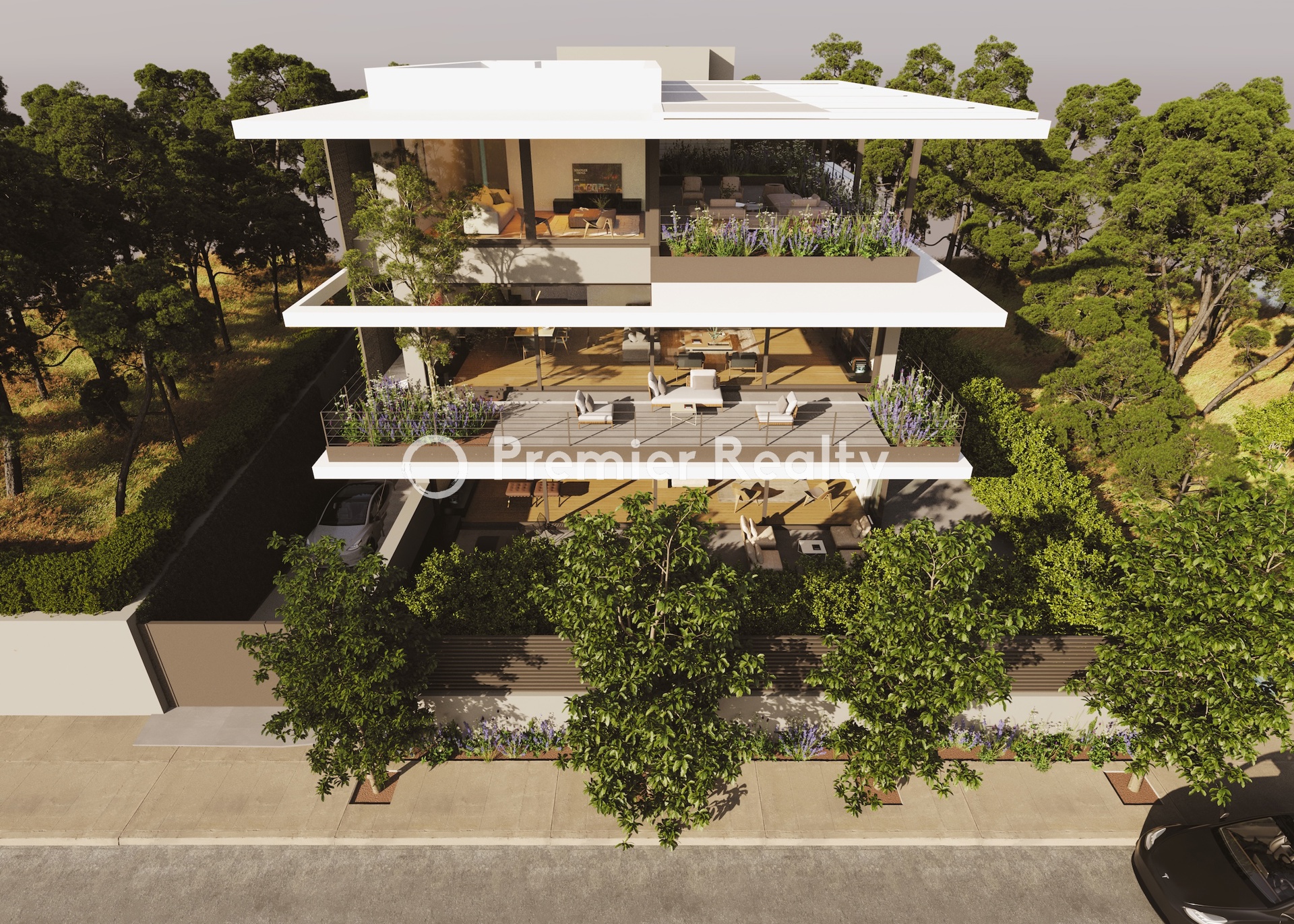 Exceptional duplex apartment (1st & 2nd floor) in a modern complex of two houses in the area of Filothei, just 900m from Drosopoulou Park and 1km from Park Pikioni. The 1st floor of a total area 158m² has spacious reception areas with high aesthetic materials and access to a large veranda, 1 modern kitchen, 1 master bedroom with ensuite bathroom and a WC. On the 2nd floor is the attic of 77m² with 2 bright bedrooms, a bathroom and a family room. In addition, the apartment has exclusive use of a stunning roof garden of 94m² with a view. The access to the roof garden is by an independent entrance from the building's main staircase, as well as from the central elevator and the internal staircase. In the basement, there is a storage room of 12m² and two parking spaces for exclusive use. The heating of the property is autonomous. Completion date: January 2025. Premier Realty Greece, Contact Phone: 6944598548, email: cs@premier-realty.gr